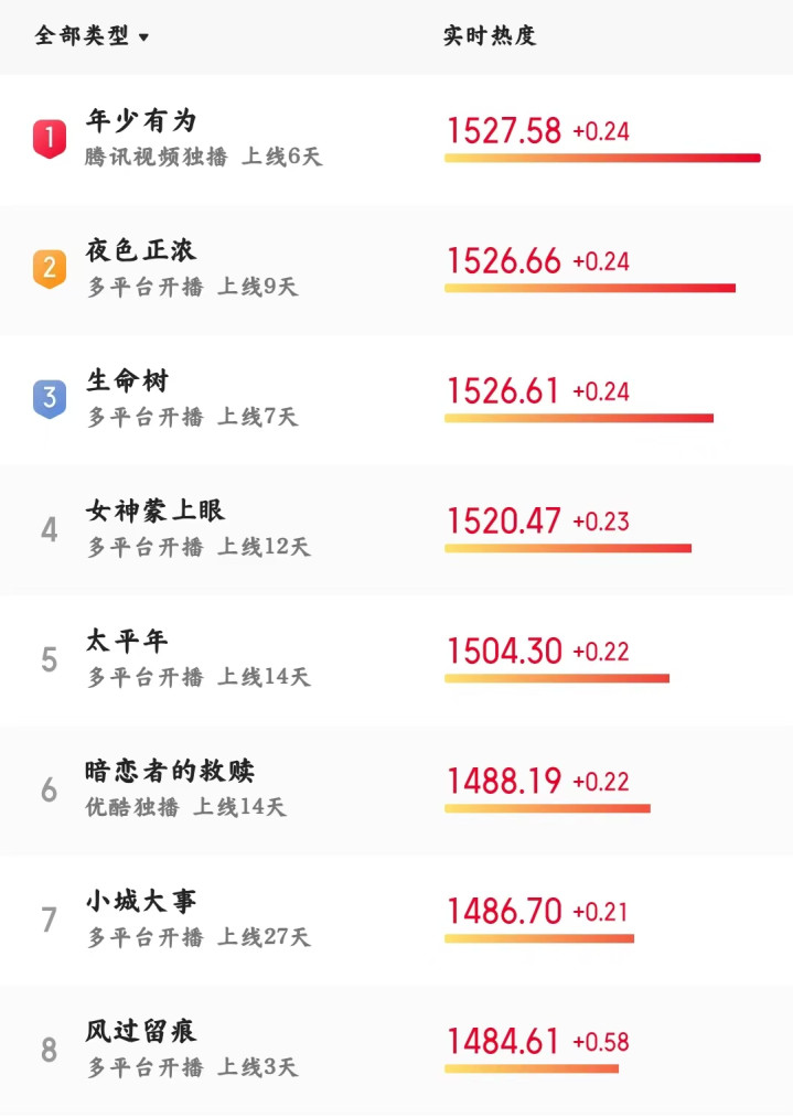 以及都市剧《年少有为》《夜色正浓》和历史正剧《太平年》。